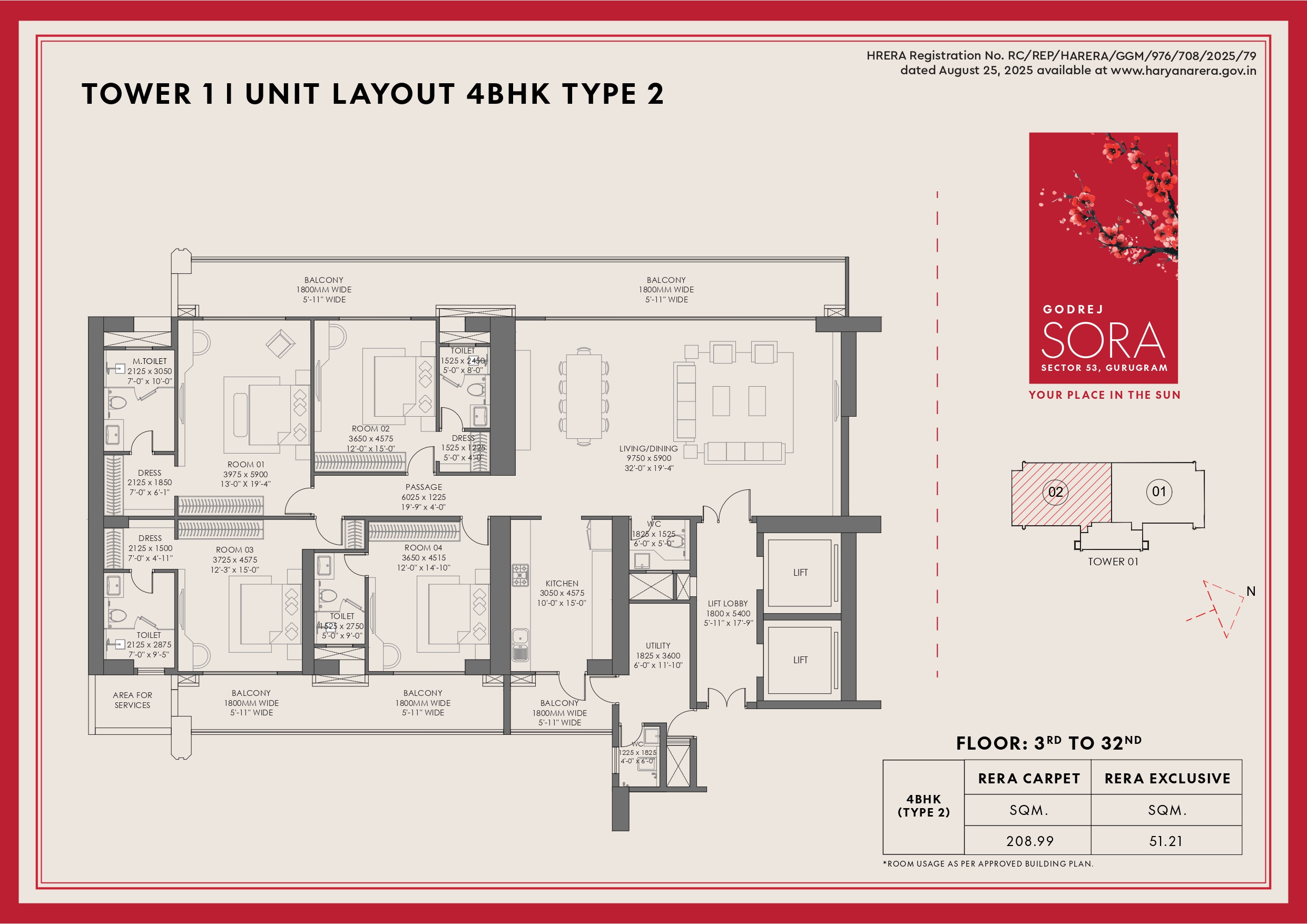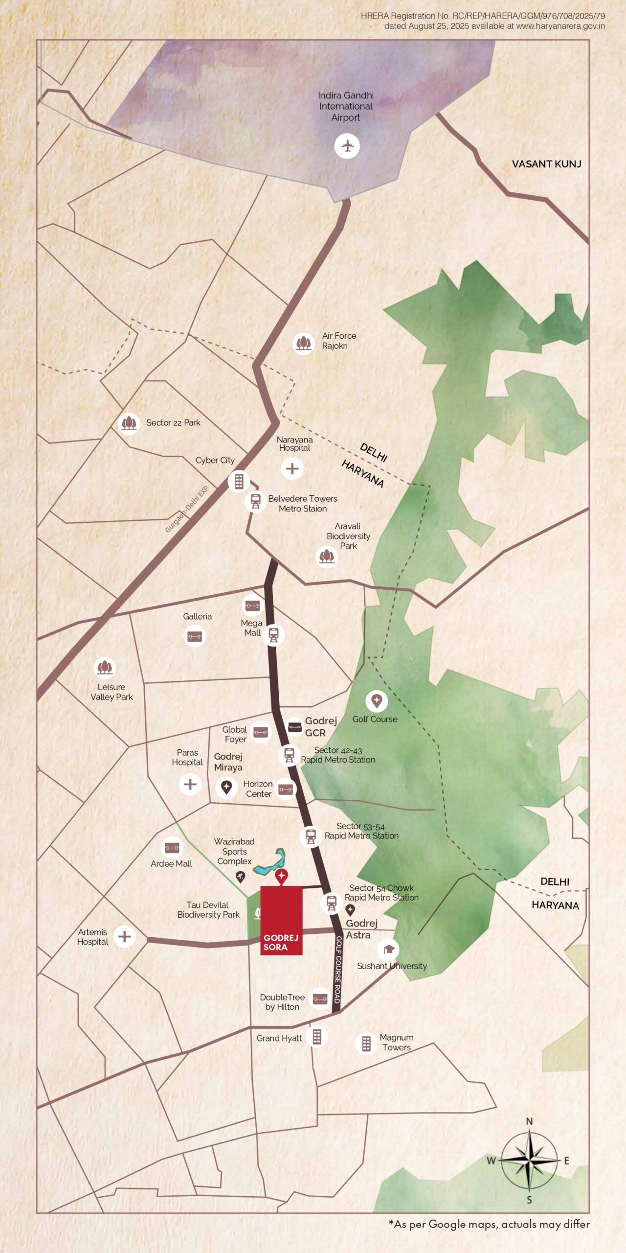 - Dual Sunrise & Sunset Balconies offering panoramic views of the Aravallis and Golf Course Road